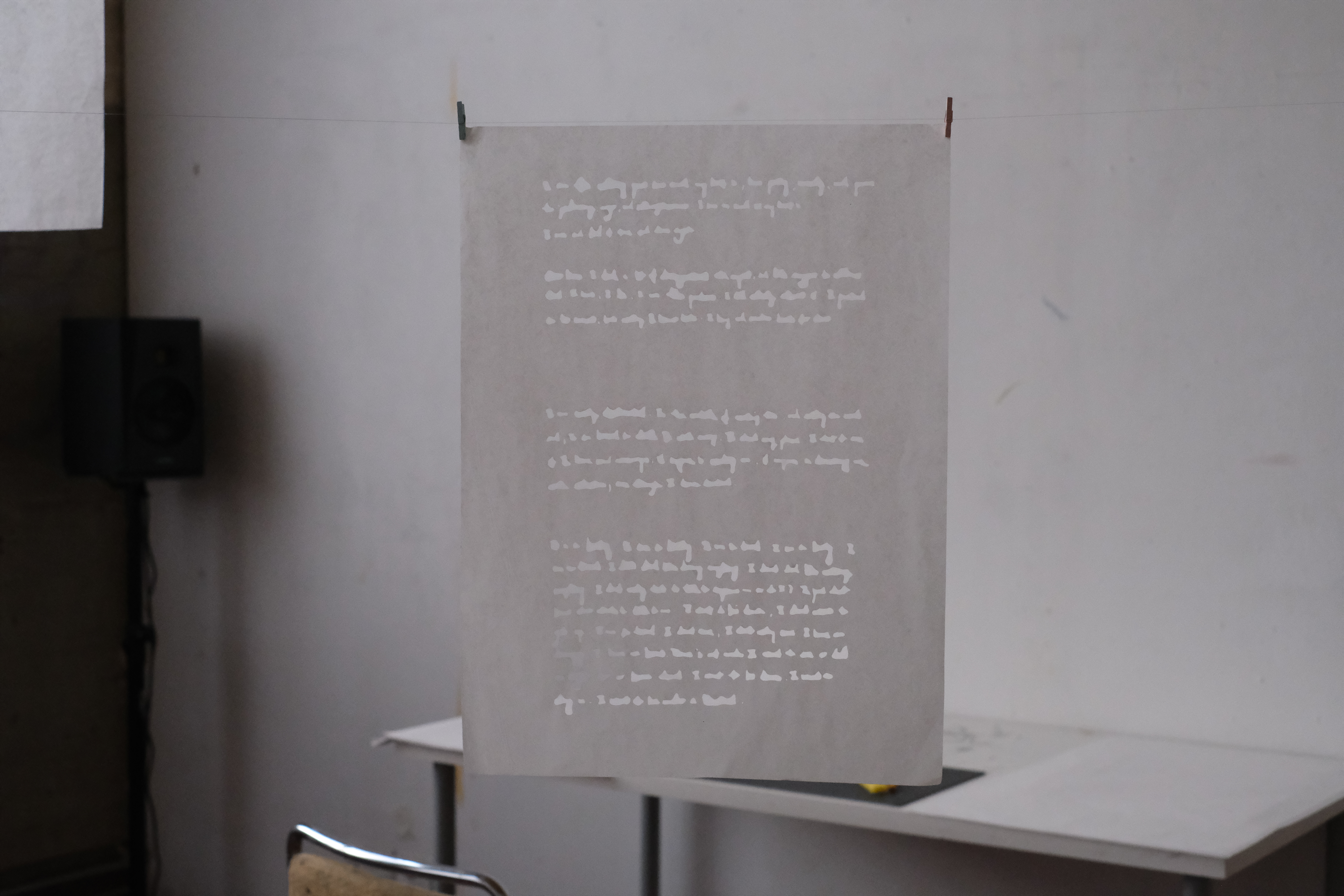 In response, the series looks to embed the doubt and anxieties present behind any act of proclamation or disclosure, however bold they may sound, in material and sonic form. The aim, then, is to dial the act of bringing words into the world into a gentler, more perishable form – as an expression of still speaking, but more vulnerably, tentatively, and carefully, with room for necessary doubt.